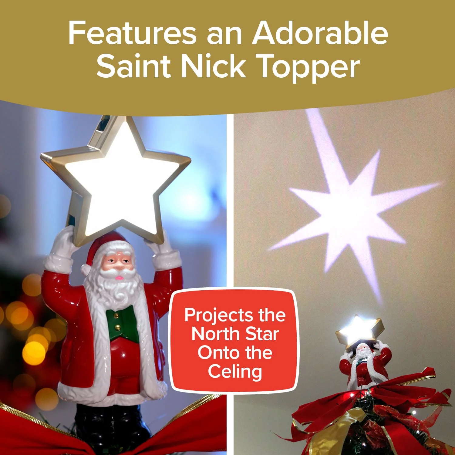 Bring the magic of the holidays home with the Superstar Santa Christmas Tree, the ultimate holiday centerpiece that combines ease, elegance, and charm. Standing majestically at 7 feet tall, including its one-of-a-kind Santa topper, this tree features an innovative light projector that casts a radiant North Star onto your ceiling, creating a dazzling focal point for any festive space. It’s fully decorated with stunning ornaments, festive bows, and elegant ribbons, and pre-lit with 200 adjustable LED lights that offer 32 lighting modes, all controlled effortlessly via remote. Setup is a breeze—simply lift, and it transforms into a lush, holiday-ready masterpiece in minutes, making it perfect for both first-time and seasoned decorators. After the festivities, it folds flat into its included storage bag for easy, space-saving storage. Durable and long-lasting, this tree is designed to withstand years of celebrations. Even though it comes beautifully decorated, there’s extra room for you to add your personal, sentimental ornaments. Whether you’re looking to impress guests, brighten your holiday decor, or surprise someone with a thoughtful gift, the Superstar Santa Christmas Tree delivers effortless style, convenience, and cheer.